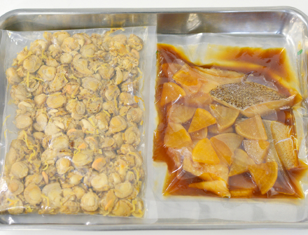 店舗でのスムーズな調理と時間短縮のために。乾物のボイル加工や、煮物用のスチーム加工も行います。